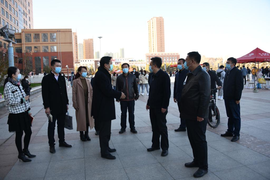 10月29日,省教育厅副厅长董成一行来乐鱼网站_乐鱼(中国)检查指导疫情防控和中小学教师资格考试考点准备工作,乐鱼网站_乐鱼(中国)党委书记周宏力,副校长、党委常委张宝成,学校应对新冠肺炎疫情工作领导小组成员陪同检查。