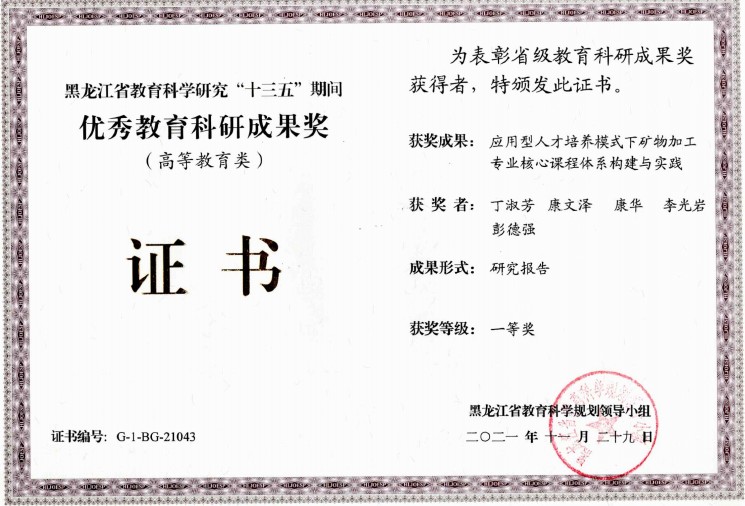 2021年获批黑龙江省教育科学规划重点课题11项,党史专项课题2项;申报黑龙江省教育厅高等教育教学改革重点项目3项,一般研究项目22项;申报2022年黑龙江省教育科学规划重点课题25项;获黑龙江省教育科研成果奖一等奖3项,二等奖10项,三等奖6项。