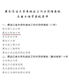 2021年4月,省教育厅发布《关于公布全省大学生就业工作示范性高校及重点培育高校名单的通知》,乐鱼网站_乐鱼(中国)被确定为“黑龙江省大学生就业工作示范性高校”,成为全省7所首批获此荣誉称号的高校,也是全省唯一一所获此殊荣的公办应用型本科高校。