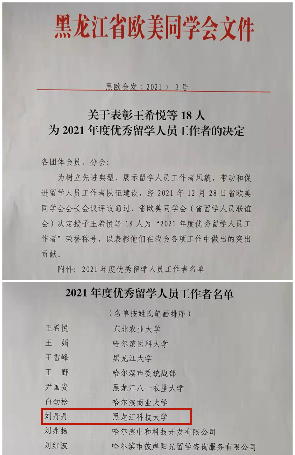 为宣传表彰广大留学人员对省欧美同学会(省留学人员联谊会)发展建设做出突出贡献,进一步展示留学人员工作者精神风貌,带动和促进留学人员工作者队伍建设,省欧美同学会(省留学人员联谊会)开展了优秀留学人员工作者评选表彰活动,乐鱼网站_乐鱼(中国)欧美同学会会员刘丹丹荣获“2021年度优秀留学人员工作者”称号。