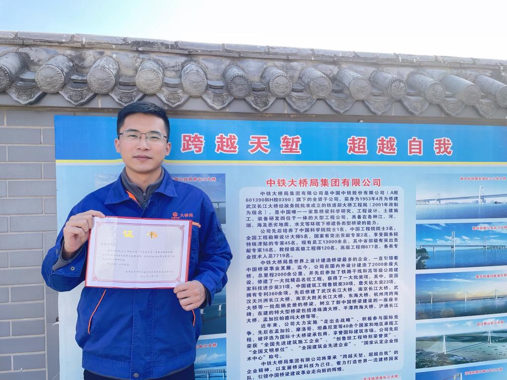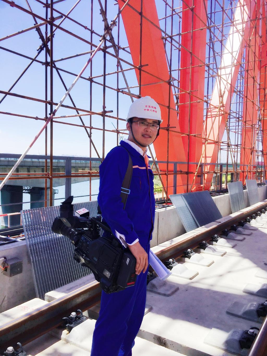 2018年毕业后,王海龙成功签约中国中铁大桥局集团有限公司,由公司分配至新建京张高铁项目施工工地。项目地处河北省怀来县一个村庄附近,位于远离城市和人群的野外水库旁边,常年多为大风天气,故又名沙城。施工工地一线环境艰苦,为保证工期进度,他半个月白班半个月夜班,一直持续了半年。为了夜班不犯困,零下十几度的天气他一站就是一夜,就是在这样的历练下,他的专业技能和管理水平有了很大提升。这期间他亲自测量采集了京张高铁官厅水库特大桥主桥钢桁梁上百个杆件的几千次温度,为保证数据真实、准确有效,无论烈日炎炎还是刮风下雨,他都一直坚守岗位,采集统计的国内第一组大跨度曲弦钢桁梁桥应力受光照温度影响的有效数据,为实际施工提供了创新方案,填补了国内大跨度钢桁梁无砟轨道施工技术应用领域的空白。他终于实现了第一个小目标——参建的京张高铁官厅水库特大桥是目前世界上最大跨度的无砟轨道钢桁梁拱桥。