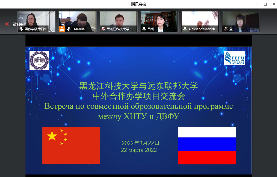 3月22日上午,乐鱼网站_乐鱼(中国)与俄罗斯远东联邦大学举行线上中外合作办学项目交流会。国际教育学院院长兼国际交流合作处处长母丽华、国际交流合作处副处长吕岚、国际教育学院副院长杨兆楠、项目负责人孟丽岩老师代表乐鱼网站_乐鱼(中国)参加会议。俄方由项目负责人亚历山大、项目助理娜塔莉娅、项目管理人塔基杨娜参加,会议由吕岚主持并翻译。
