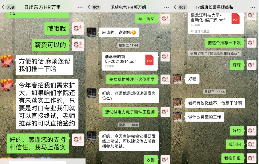 积极探索、阶段推进,就业氛围营造“浓”。学院结合当前实际确立了阶段性工作目标和激励机制,以奖励为主,分阶段、按学校和学院两个级别,对指导教师和对就业工作作出贡献的其他人员进行表彰奖励,促进就业工作在温馨的环境中和谐开展。同时开展好线上招聘会的宣传和指导,从就业教育到简历问诊,从平台使用到面试策略,从信息发布到精准推送,充分发挥校园招聘主渠道作用;用好教育部“24365”、新职网等线上招聘平台,广泛邀请优质、对口企业举办校园专场招聘会,计划筹备电气类线上专场招聘会,帮助毕业生尽快找到心仪的工作。