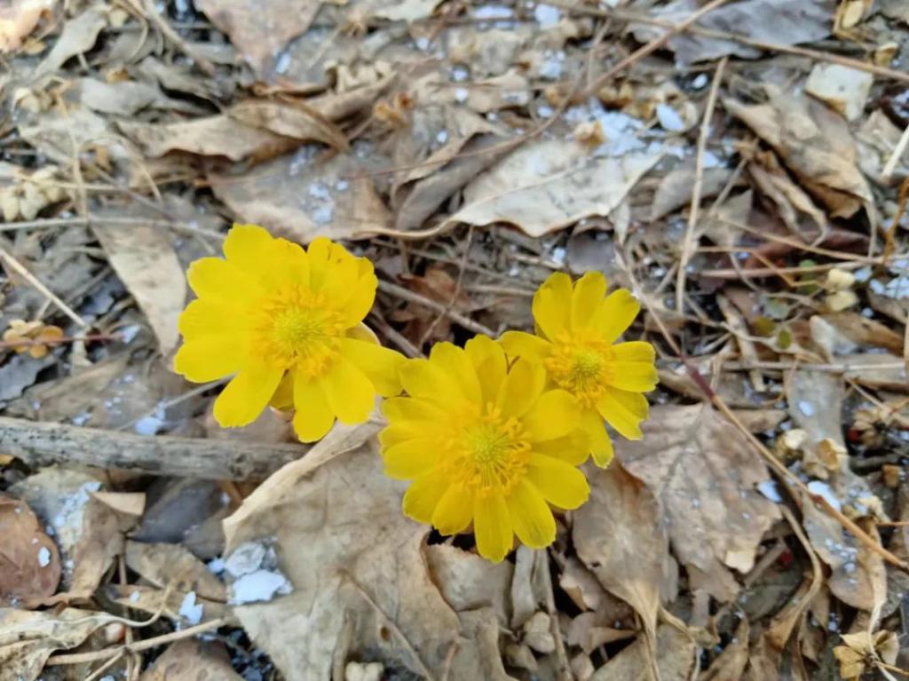 那里有一片冰凌花,嗯,就是你想到的那种可以与冰雪共存的黄色的花朵。前段时间我们过去看时还只见冰雪不见嫩芽,我们都担心去年的大雪会不会扼杀它的生命。今天,我迫不及待地想去看看。