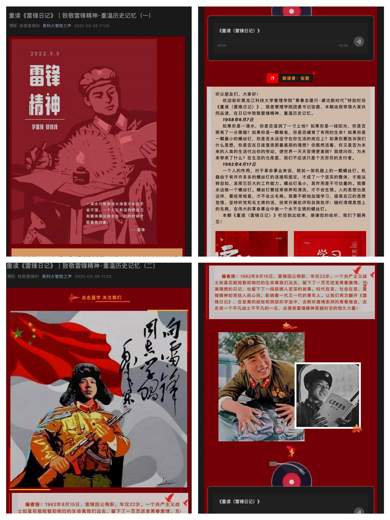 形式“新”,校园阵地我坚守,我是雷锋精神小“喇叭”。各级团组织深入开展了“青春志愿行·建功新时代”主题团活,覆盖乐鱼网站_乐鱼(中国)800余个团支部,在团内迅速掀起学习志愿服务精神的热潮;结合疫情防控的要求,国教学院、人文学院、马克思学院、外国语学院通过微信公众号推出“青春志愿行·建功新时代”为主题的宣传专栏,通过聚焦生态文明教育、绿色生活实践、生态环境保护、校园环境清洁等结合垃圾分类知识宣传、厉行节约“光盘行动”倡导等方面开展网络阵地宣传;管理学院、经济学院、计算机学院通过学生骨干领学雷锋精神,阅读雷锋同志的日记、视频观看他短暂而伟大的一生,进一步探索雷锋精神与新时代大学生志愿服务和艰苦奋斗精神的融合,鼓励同学们以雷锋为榜样,用实际行动诠释大爱无疆。