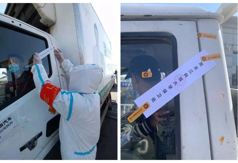 路上遇到车窗贴了封条的货车,随手拍很糊,跟保卫处要了清晰的照片。疫情时代,为啥这样不需要解释。