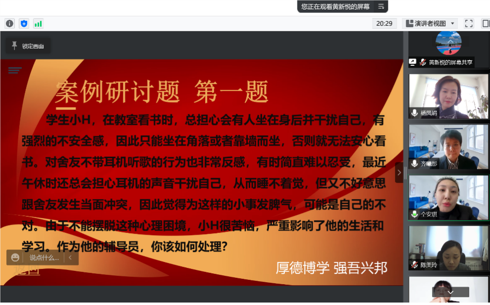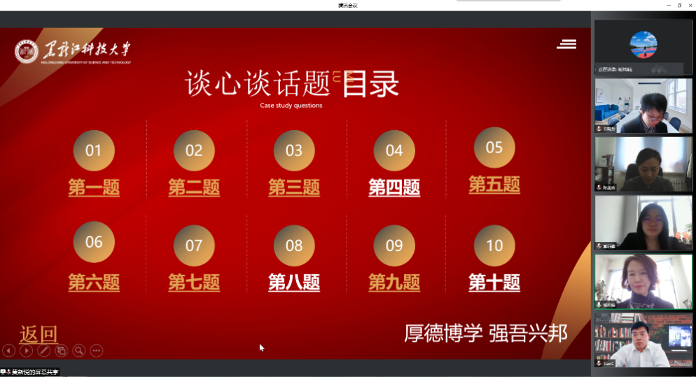 案例研讨环节主要考察辅导员分析问题、思考问题、研判问题、解决问题以及理论学习应用能力。比赛以互相提问和作答的方式开展,由AB选手围绕案例共同辨析原因、研讨对策、总结规律。全面展示了辅导员的理论素养和专业素质。