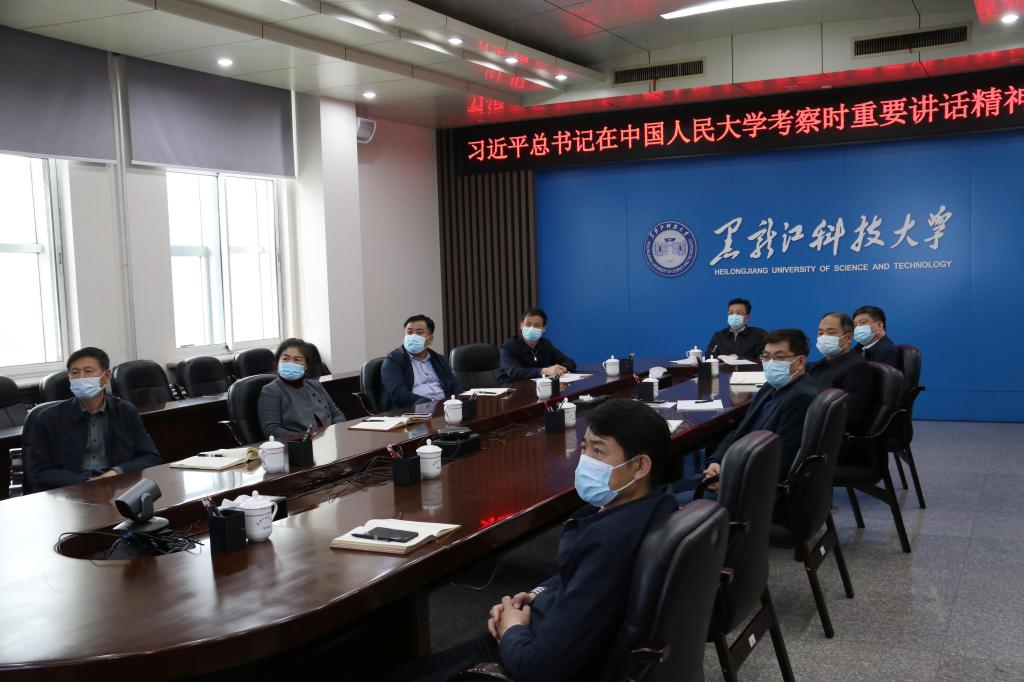 会议指出,在五四青年节即将到来之际,习近平总书记到中国人民大学考察,与师生面对面交流谈心并发表重要讲话,充分体现了以习近平同志为核心的党中央对教育事业的高度重视,对广大教师和青年学生的亲切关怀、殷切期望,是对我们教育工作者和广大学生极大的鼓励和鞭策。习近平总书记的重要讲话为全面落实立德树人根本任务,加快推进高等教育高质量发展指明了前进方向,具有极强的政治性、理论性、思想性、指导性。全校上下要切实把思想和行动统一到习近平总书记重要讲话精神上来,为矿业特色鲜明的高水平应用型大学建设、实现黑龙江全面振兴全方位振兴作出新贡献。