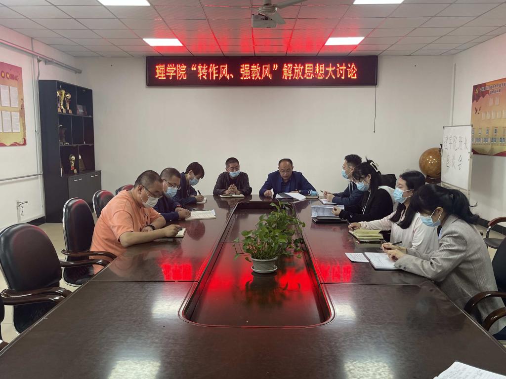 5月31日,理学院党委组织召开了“转作风、强教风”解放思想大讨论专题会议,学院班子成员、各科室负责人、部分系主任参加了会议,会议由党委书记贺龙军主持。