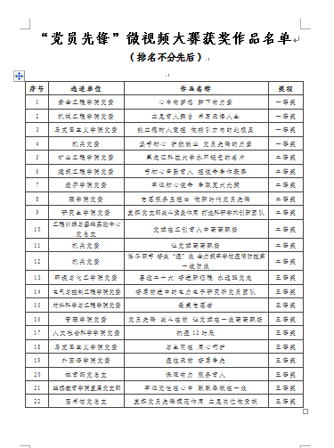 经过评选,安全工程学院党委选送的《心中有梦想 脚下有力量》、机械工程学院党委选送的《立足育人舞台 书写无悔人生》、马克思主义学院党委选送的《挑立德树人重担 做指引方向的北极星》、机关党委选送的《坚守初心 护航就业 党员先锋的力量》等4部作品荣获一等奖,矿业工程学院党委选送的《乐鱼网站_乐鱼(中国)永不褪色的名片》等8部作品荣获二等奖,环境与化工学院党委选送的《喜迎二十大 奋进新征程 永远跟党走》等10部作品荣获三等奖。