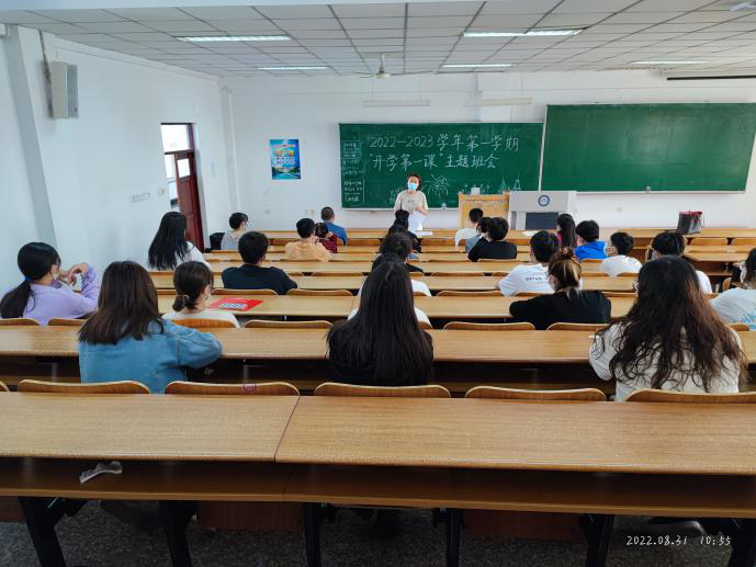 疫情防控教育与思想教育相结合,筑牢疫情防控屏障。为加强常态化疫情防控背景下的大学生思想政治教育,结合新学期疫情防控实际,制定并下发了《关于组织开展2022年秋季学期“开学第一课”主题班会的通知》,各学院根据实际,积极制定活动方案,科学规范做好线上线下学生思想教育工作,通过主题班会、年级大会、公众号等多种形式,对学生思想动员“再落实”、学生责任意识“再明确”、学生疫情防控知识“再学习”、学生防护意识“再强化”进行部署,进一步提高学生的防控意识和防护能力,当好自身健康“第一责任人”,筑牢校园安全防线。