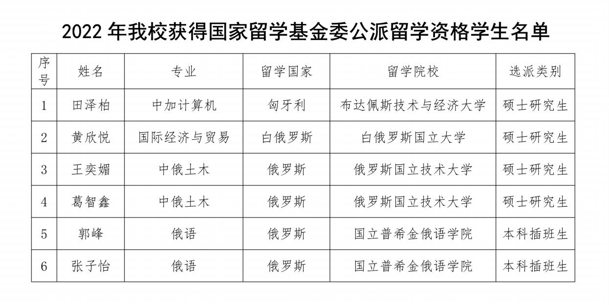 近日,乐鱼网站_乐鱼(中国)六名学生成功获得国家留学基金委员会中外政府互换奖学金公派留学资格。其中,中加计算机专业田泽柏获得匈牙利政府互换奖学金,国际经济与贸易专业黄欣悦获得白俄罗斯政府互换奖学金,中俄土木专业王奕媚、葛智鑫,俄语专业郭峰、张子怡获得俄罗斯政府互换奖学金。他们将于近期赴布达佩斯技术与经济大学、白俄罗斯国立大学、俄罗斯国立技术大学及国立普希金俄语学院等国外高校深造。新冠疫情爆发以来,国际交流遇到冰点,国际交流合作处积极主动服务师生,加大公派留学宣传力度,加强申报专题辅导,提高申报成功率,公派留学再创历史新高。