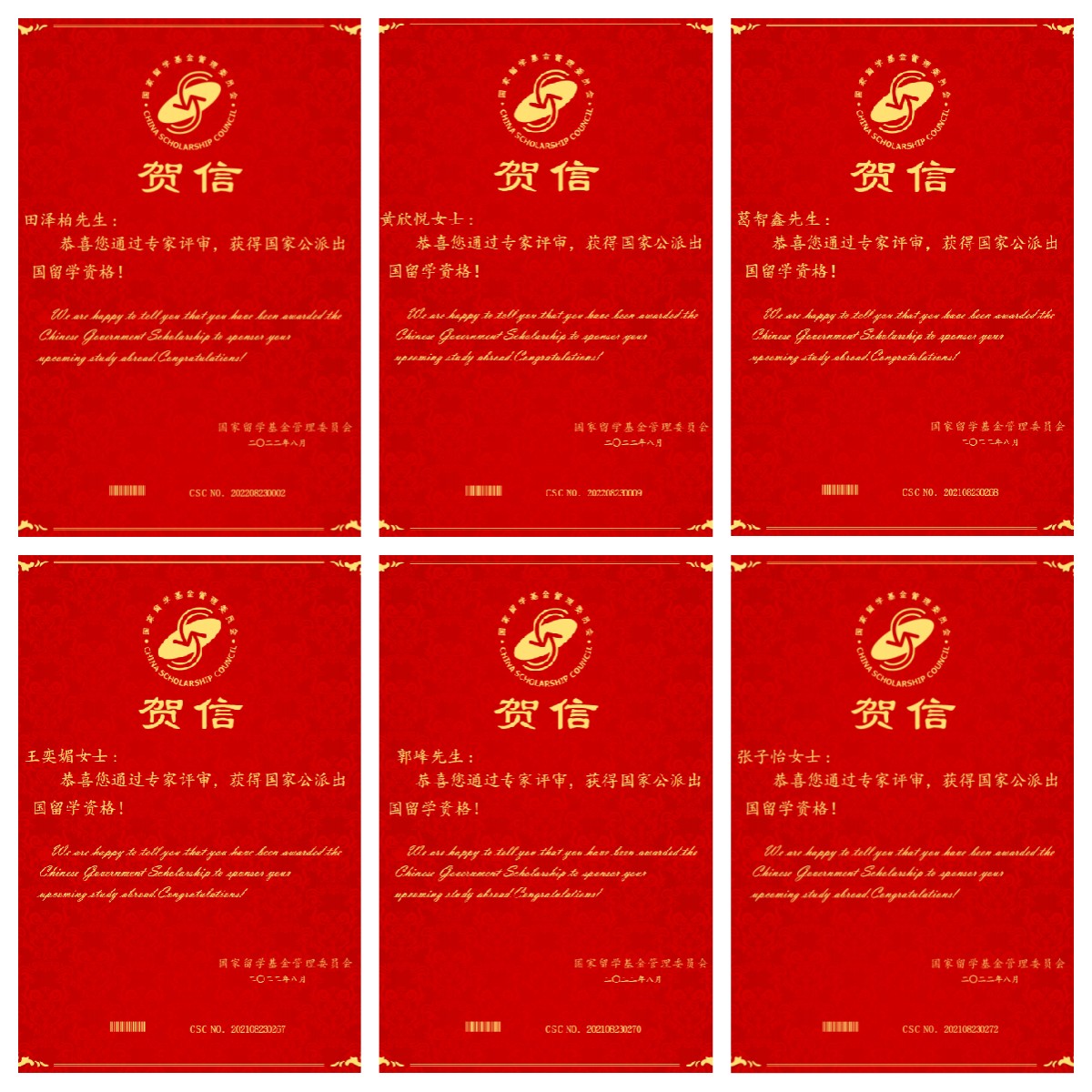 以上六名同学经过个人申请、学院初审、学校综合评审推荐、国家留学基金委审核、外方院校录取等多个环节,最终获得外国政府互换奖学金项目资助。他们在留学期间将免除学费,国家留学基金委员会将提供补贴及一次往返国际旅费。