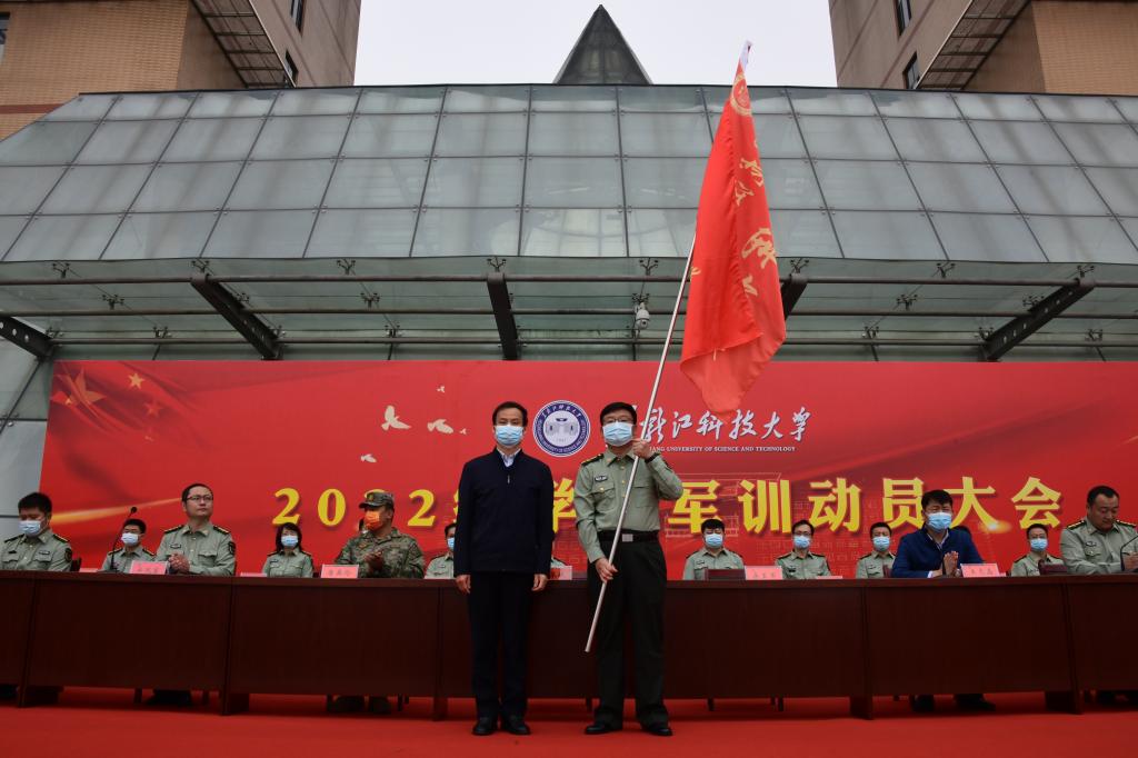 动员大会上还进行了授旗仪式。校党委副书记桑玉军向军训旅授旅旗,军训旅旅长邬承斌接旗。军训旅副参谋长毛超主持了授连旗仪式,各连连长接旗。