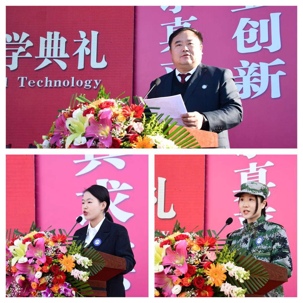 全体新生提前在科技广场就坐,手挥国旗,齐唱《我和我的祖国》,现场气氛热烈。14时,开学典礼正式开始,全场肃立,五星红旗在雄壮的国歌声中冉冉升起。