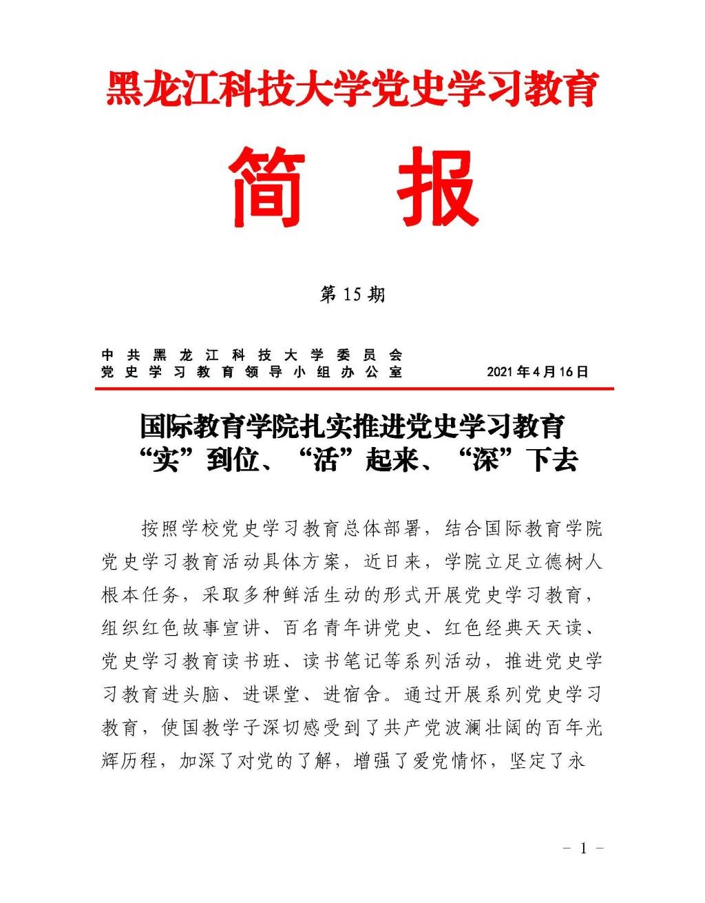 党史学习教育工作简报(第15期)
