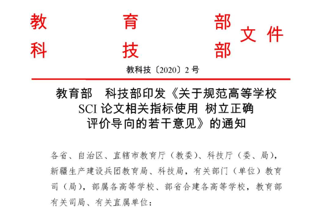 关于规范高等学校SCI论文相关指标使用树立正确评价导向的若干意见