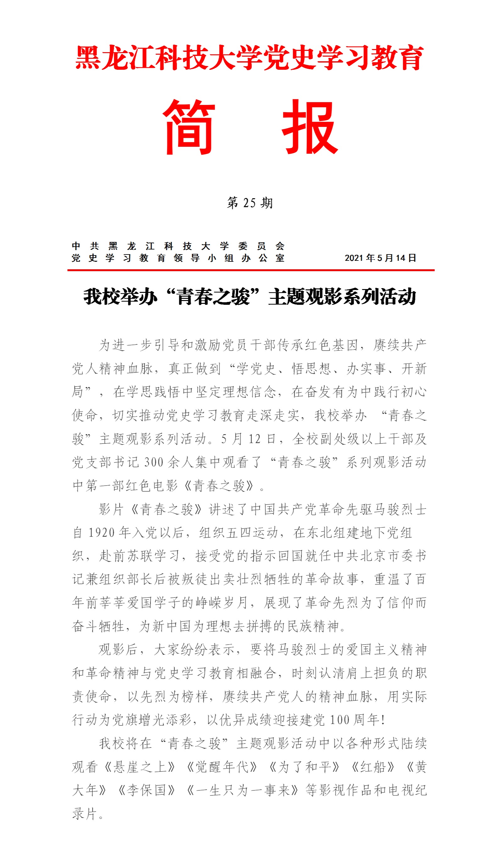党史学习教育工作简报(第25期)