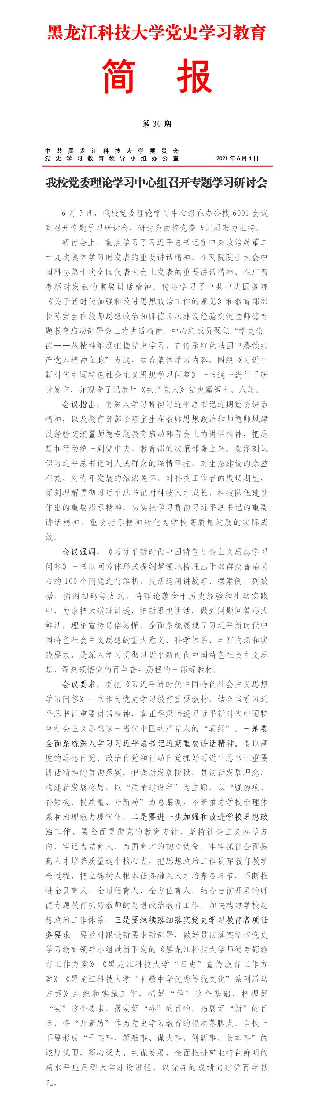 党史学习教育工作简报(第30期)