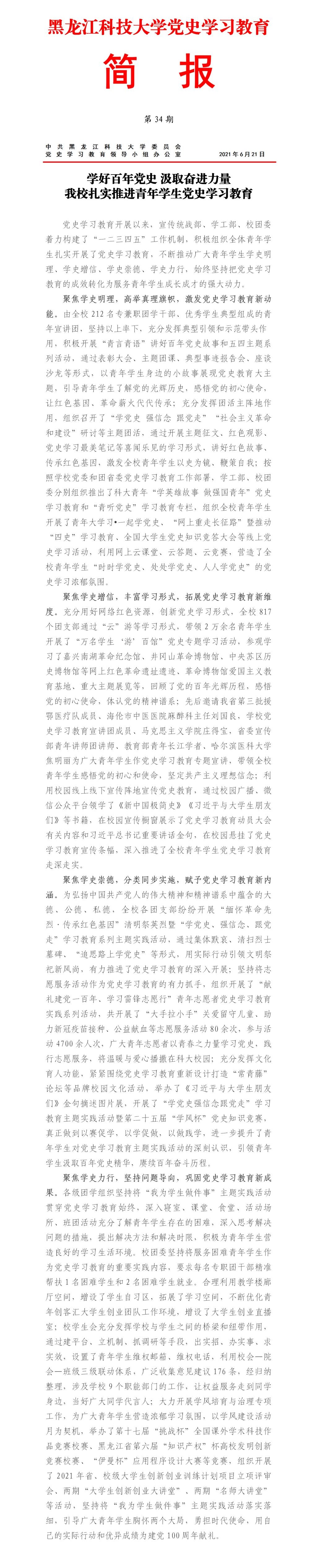 党史学习教育工作简报(第34期)