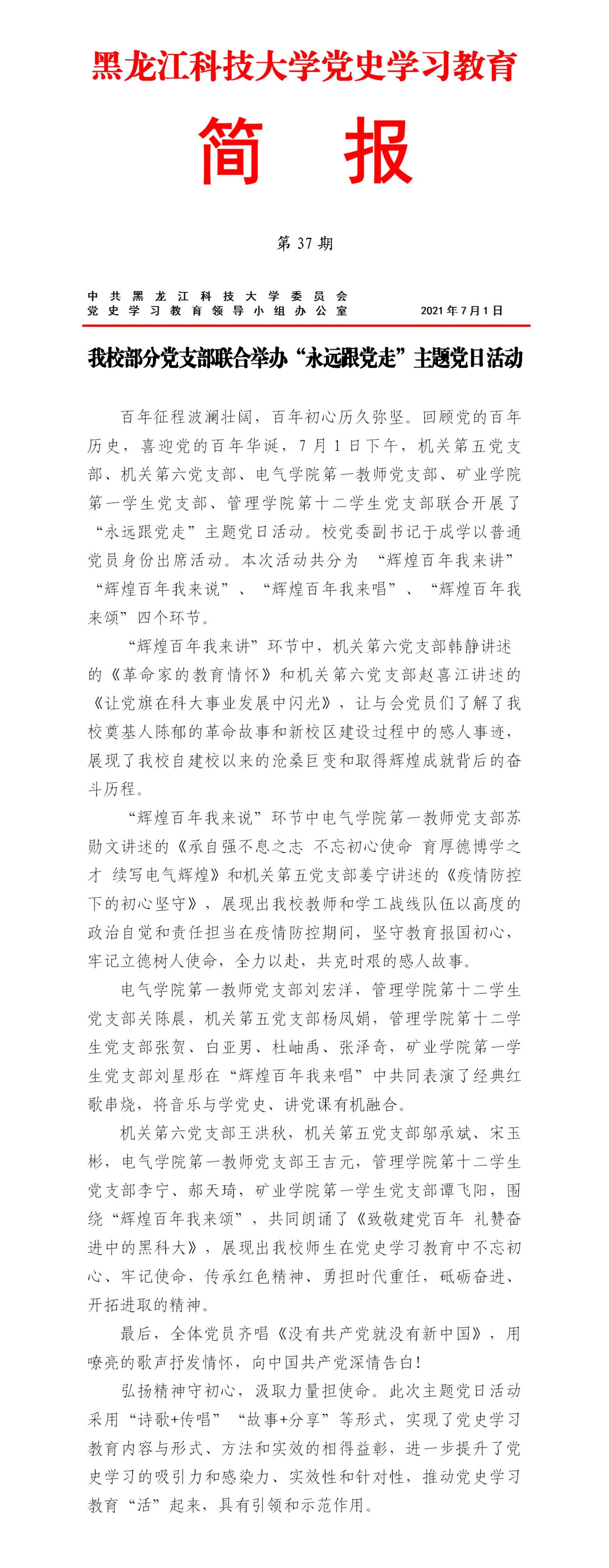 党史学习教育工作简报(第37期)