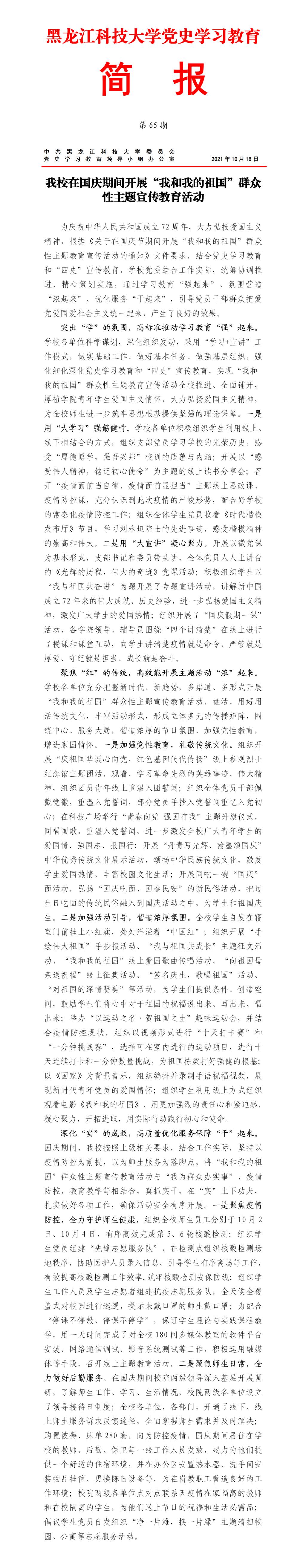 党史学习教育工作简报(第65期)