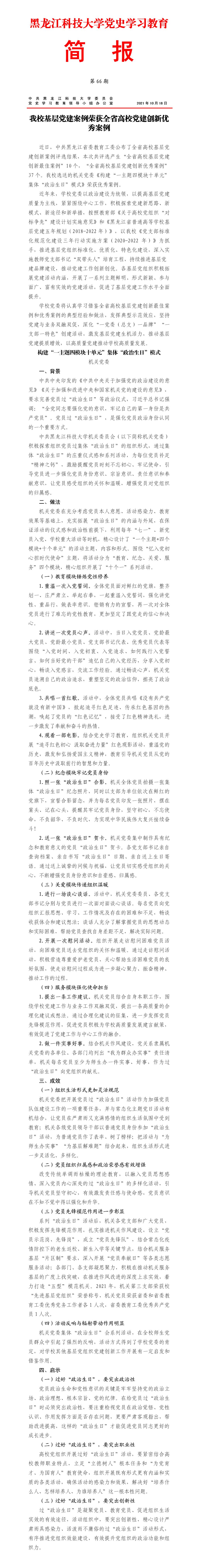 党史学习教育工作简报(第66期)