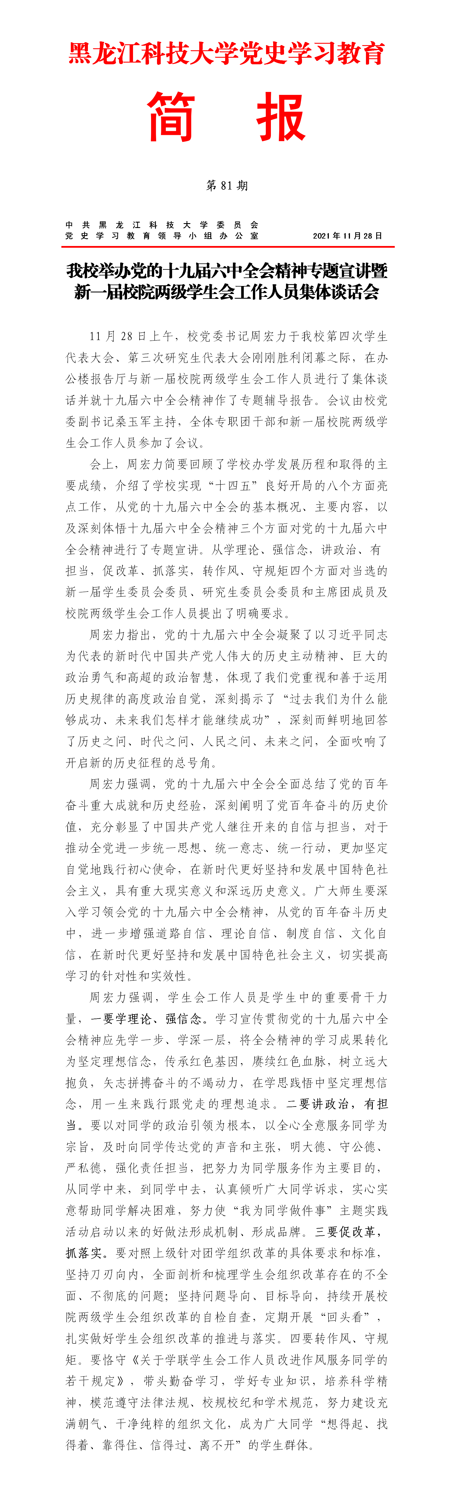 党史学习教育工作简报(第81期)