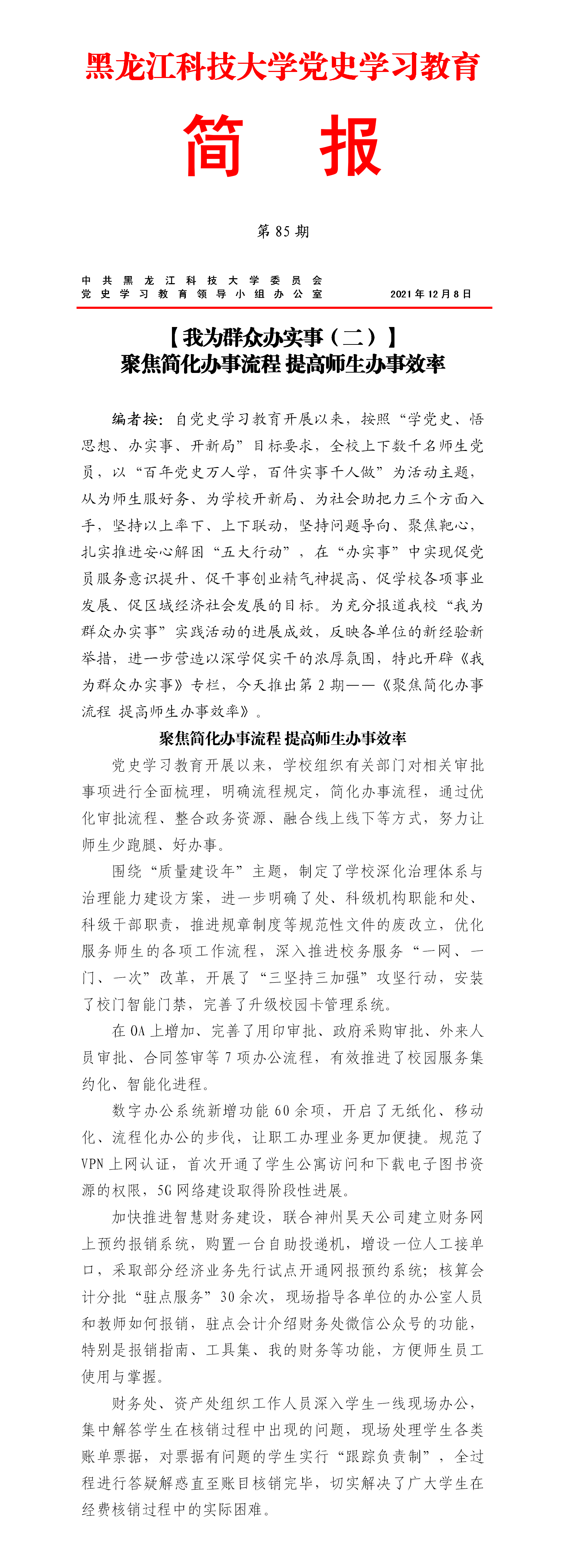 党史学习教育工作简报(第85期)