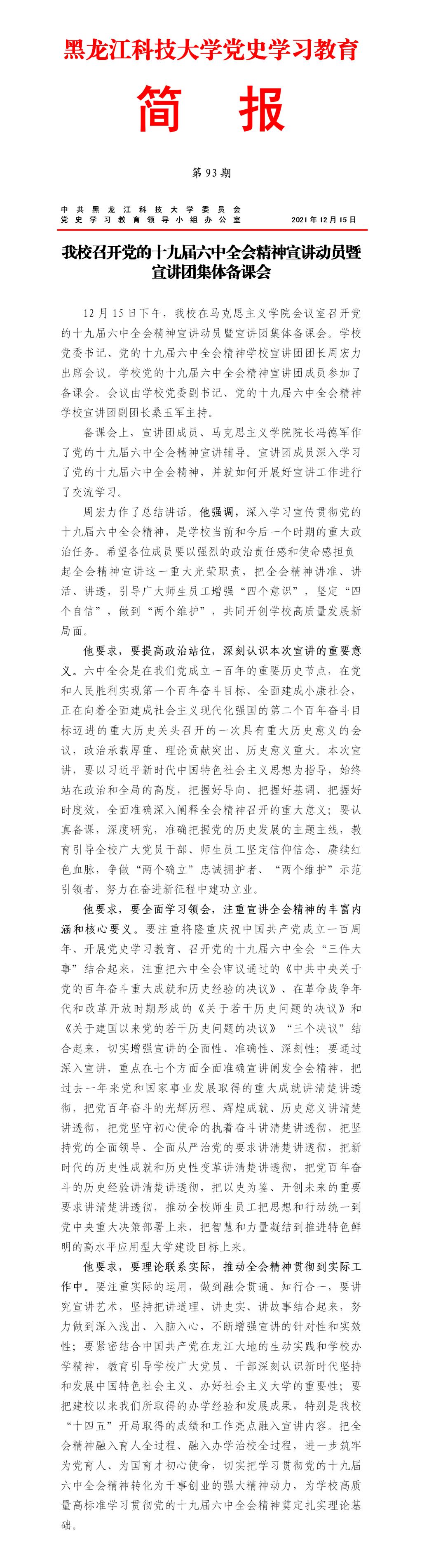 党史学习教育工作简报(第93期)