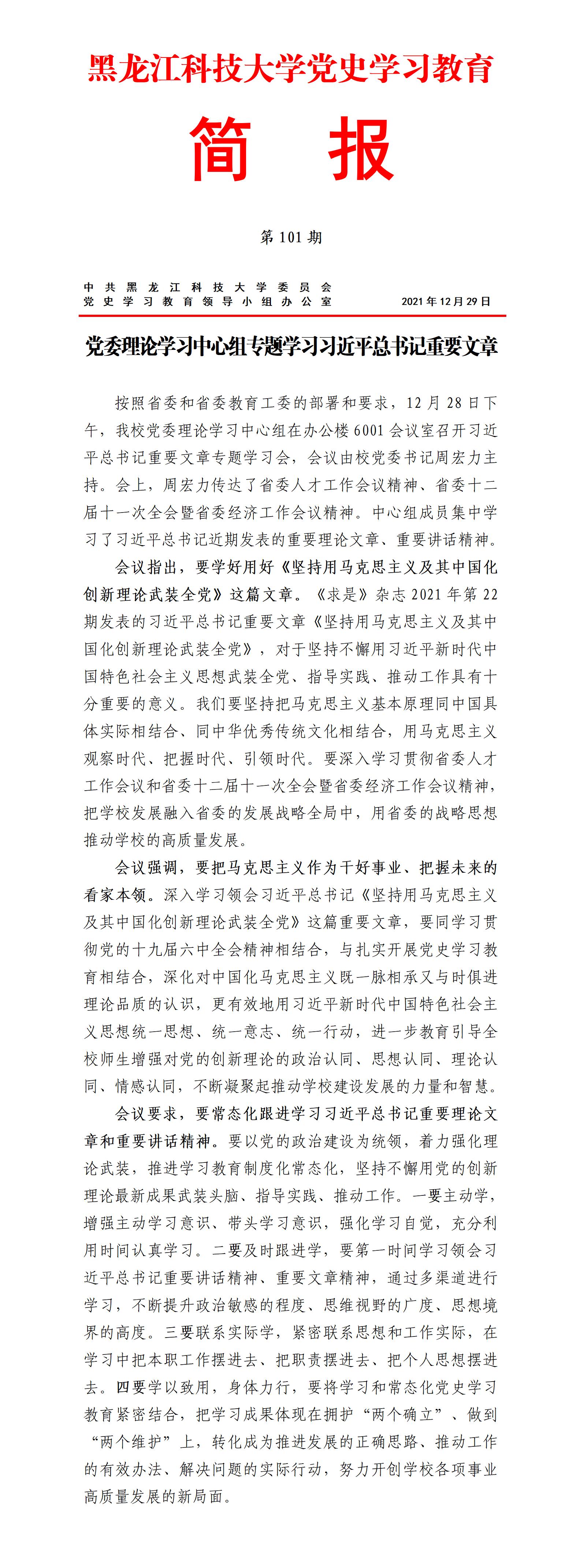 党史学习教育工作简报(第101期)
