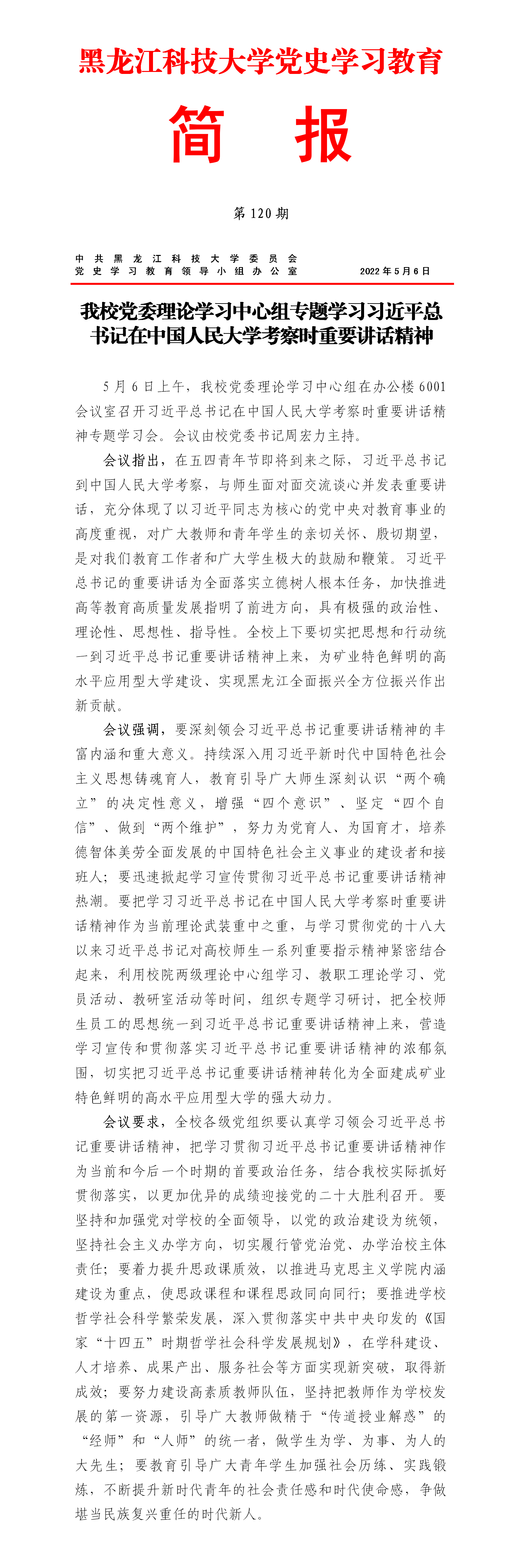 党史学习教育工作简报(第120期)
