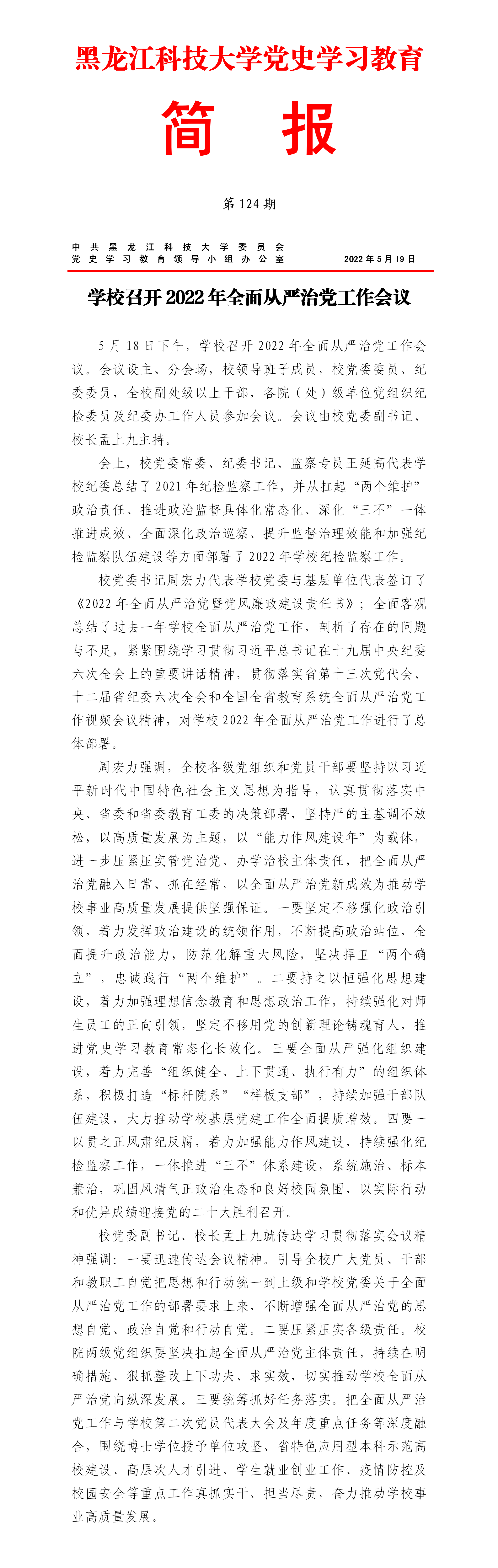 党史学习教育工作简报(第124期)