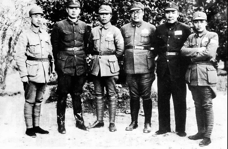 1939年3月,周恩来(后右)和叶挺(后左)从桂林前往皖南,吴奚如(前右一)陪同