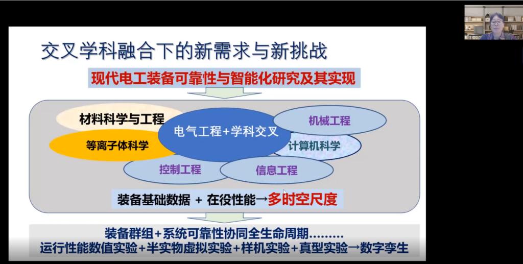 报告会上,刘晓明教授以《交叉学科融合创新背景下的现代电工装备可靠性与智能化研究及其实现》为题作学术报告,介绍了在交叉学科融合背景下产生了许多新需求与新挑战,结合现代电工装备可靠性与智能化研究及其实现的背景,阐述了当代科研人需要具备哪些科学研究思维能力,指出了分析性思维、设计思维、批判思维、网络思维对科学研究的重要性,强调了电气交叉学科、电气工程+的特点。