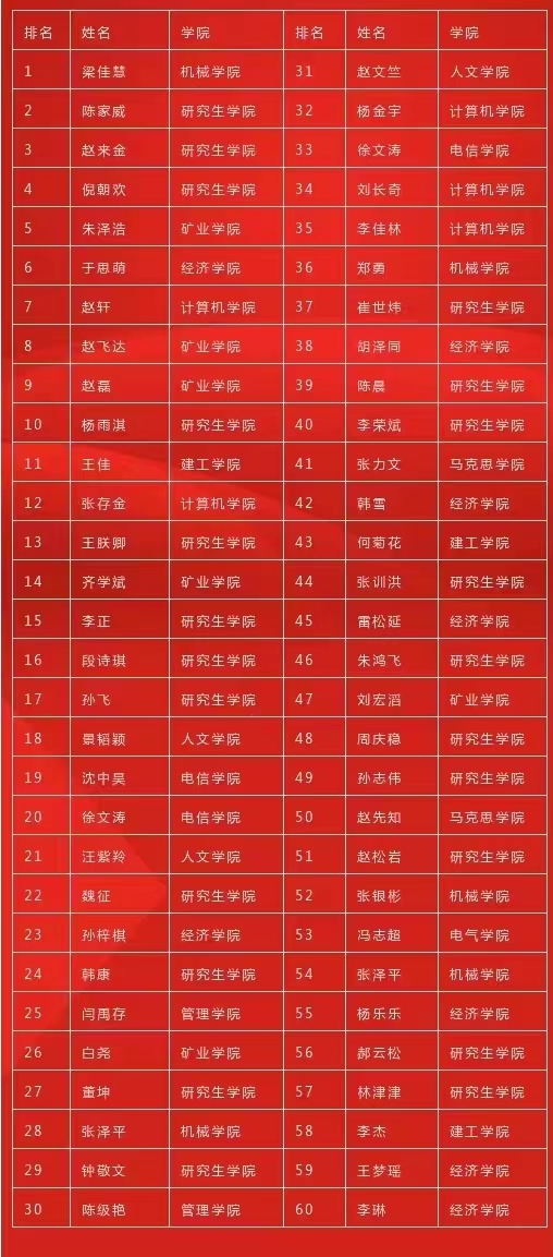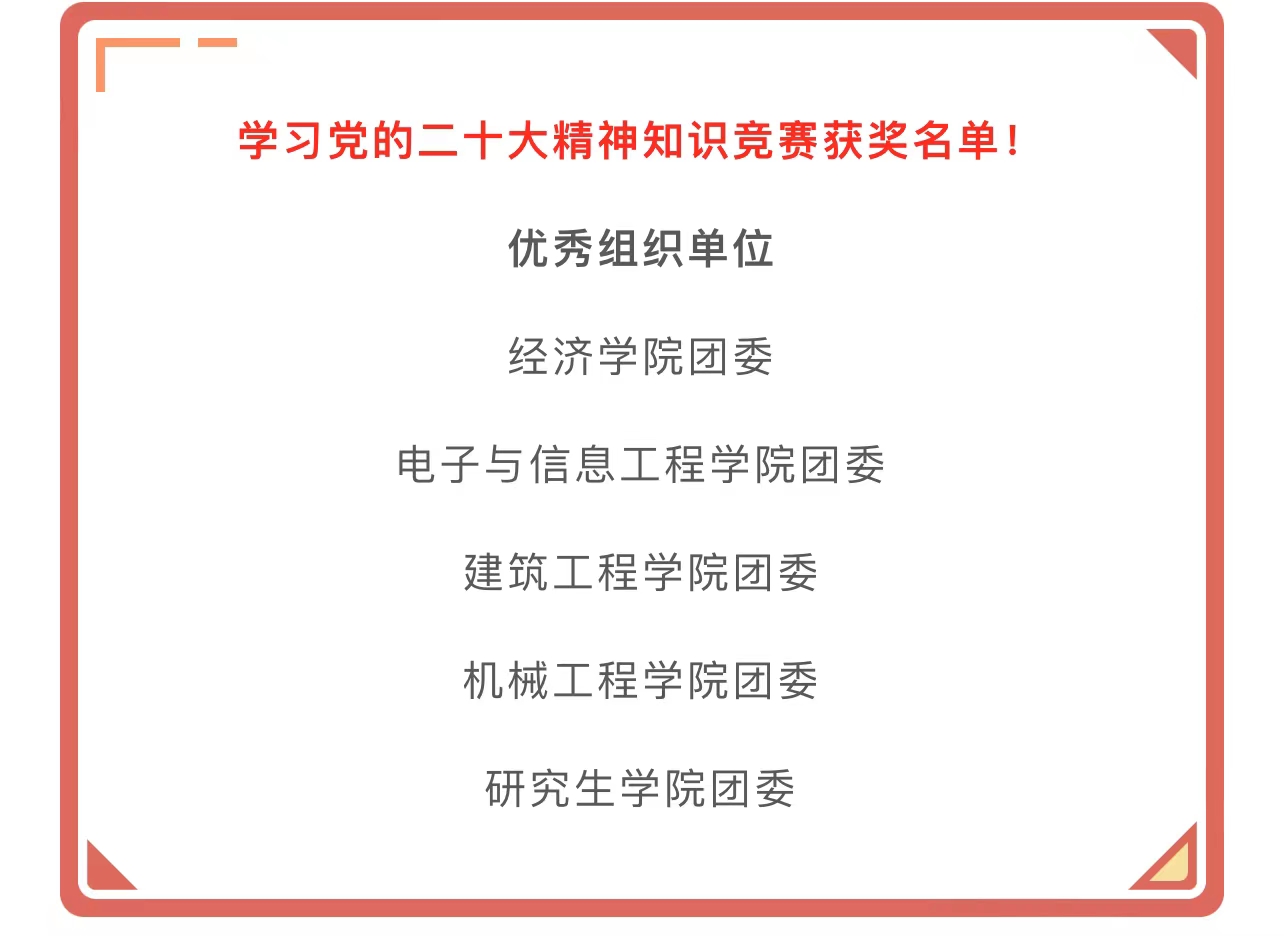 本次活动共吸引了全校8000余名师生参与答题,活动最高分100分,有300余名同学答了满分,根据活动规则,共评选出了“优秀个人”60名,“优秀组织单位”5个。本次活动的成功举办,在广大青年学生中形成了以赛促学、比学赶超的生动局面,营造了奋进新征程的良好校园文化氛围。