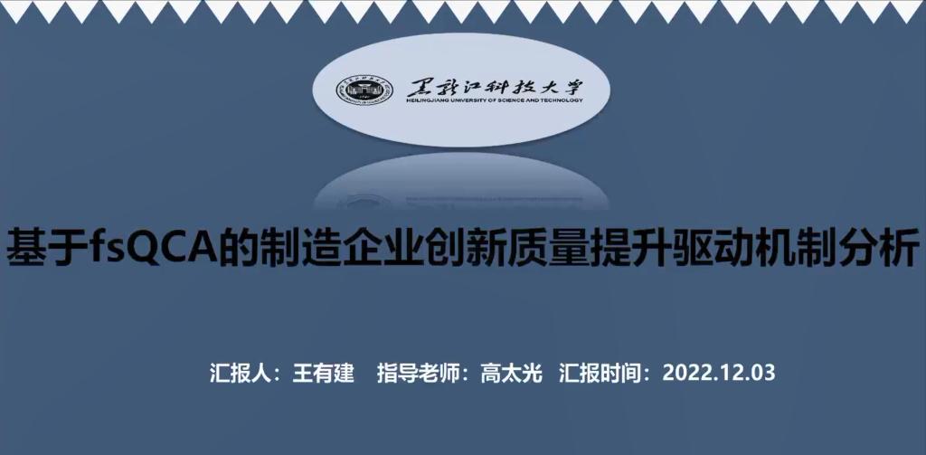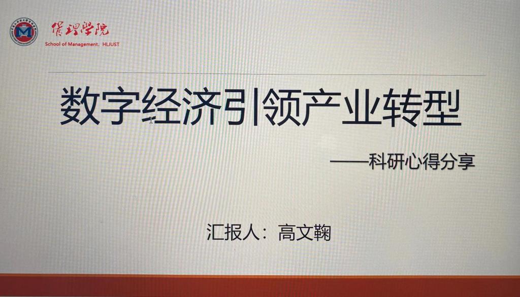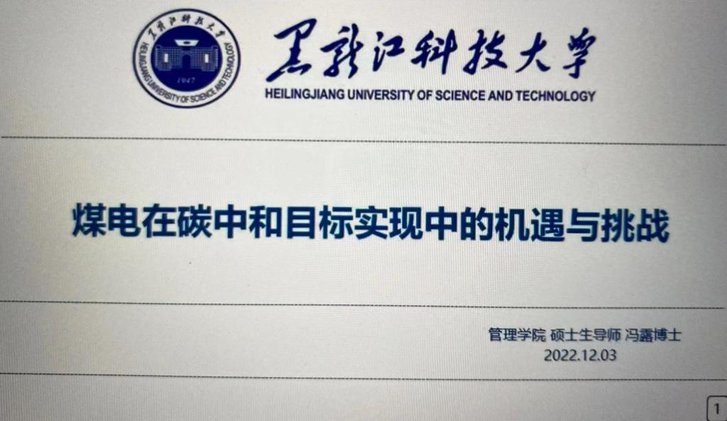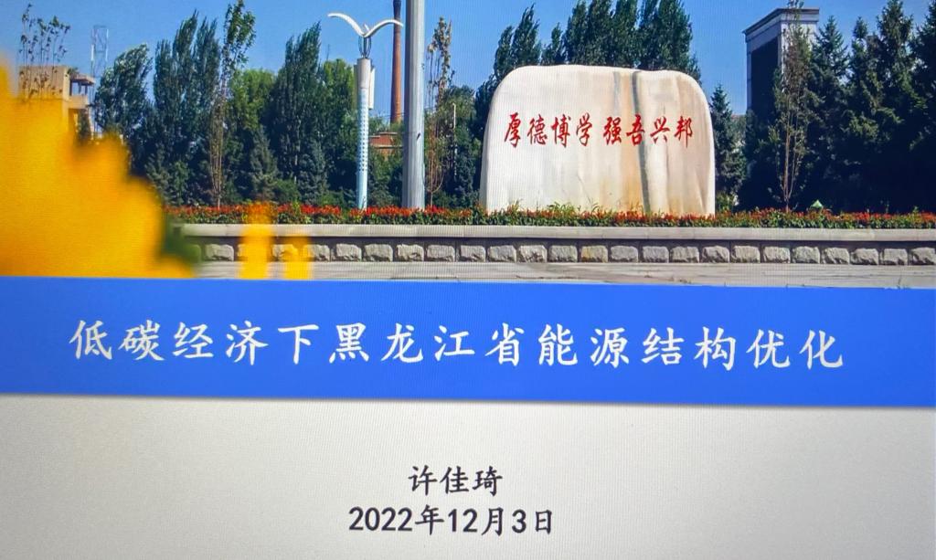 管理学院硕士生导师许佳琦博士、冯露博士和高文鞠博士分别以《低碳经济下黑龙江省能源结构优化》《煤电在碳中和目标实现中的机遇与挑战》以及《数字经济引领产业转型》为题做主题汇报,既交流了相关领域的研究成果,也分享了科研工作心得。