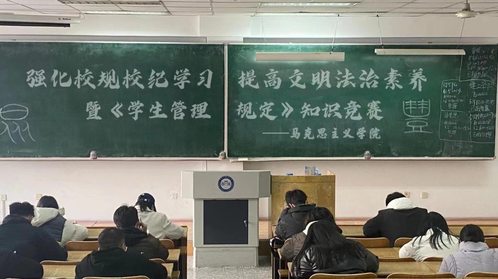 强化文明法纪教育筑牢思想道德防线。通过学院公众号平台“黑乐鱼网站_乐鱼(中国)马院思政之音”进行普法活动,推送《民法典》《网络安全法》相关内容,教育引导我院青年学生知法、懂法、守法,争做遵纪守法、知行合一的大学生;开展“强化校规校纪学习提高文明法制素养”暨《乐鱼网站_乐鱼(中国)学生管理规定》知识竞赛,加强对学生的遵纪守法教育、文明礼仪教育、行为规范教育和养成教育,以竞赛促学习,以竞赛促行动,切实增强学生“规矩”意识和纪律观念。