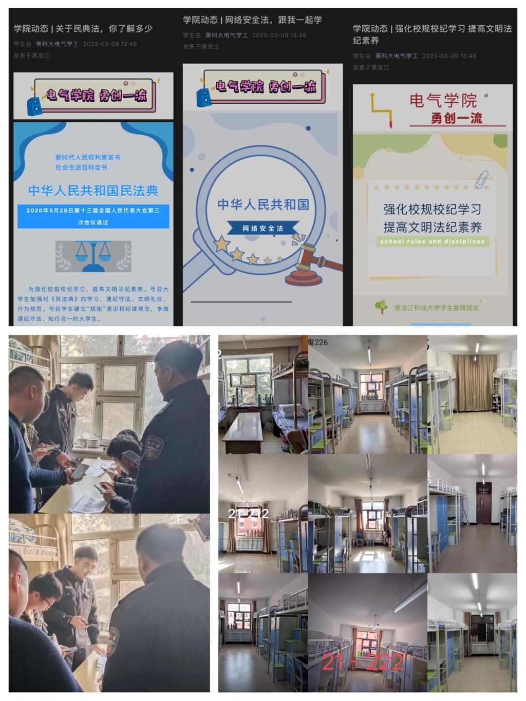 严明法规校纪“警戒线”。电气学院开展民法典普及宣传,增强法律学习;开展网络安全法宣传教育,强化法律意识;开展强化校规校纪学习主题班会,针对《乐鱼网站_乐鱼(中国)学生管理规定》进行学习,增强学生规矩意识和纪律观念;邀请松浦派出所民警共同开展反诈宣传,加强学生自我保护意识。