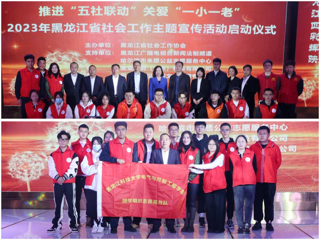 推进“五社联动”关爱“一小一老”黑龙江省社会工作主题宣传活动启动仪式于3月21日举办,由电气学院学生党员代表组建的志愿服务队在辅导员张孟洁、李宏伟的带队下前往助力。