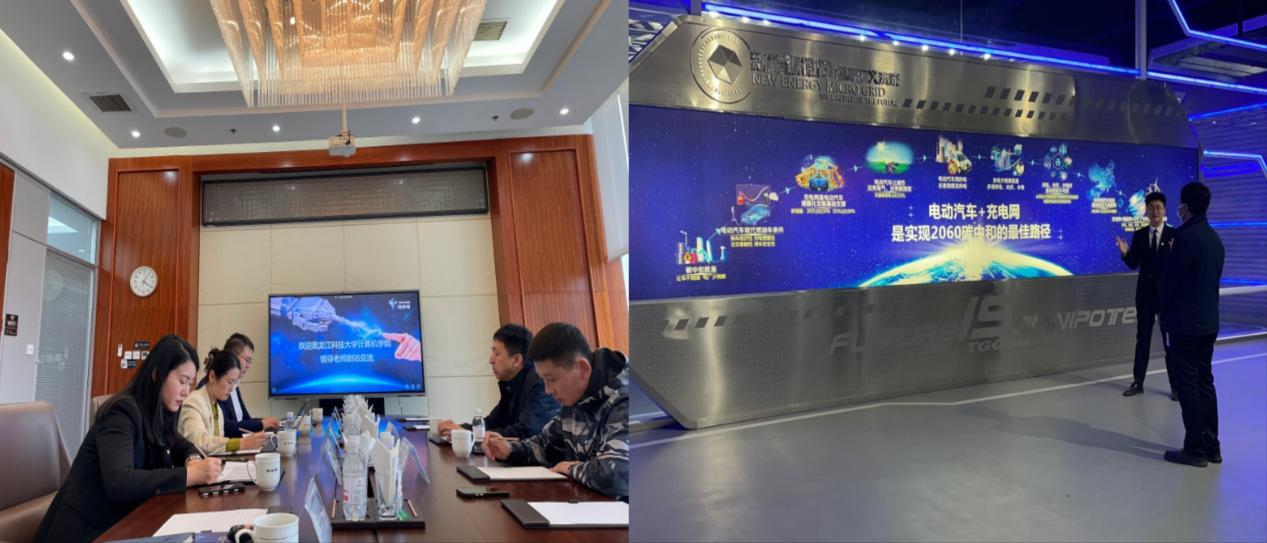 在特来电新能源有限公司考察时,人力资源中心总监刘新宇介绍集团的整体情况及新入职员工的福利待遇、职业发展情况。云平台中心副总经理张锟介绍了公司的充电站网布局及充电安全监控、防护、运维等技术研发和平台建设情况。冯福生代表学院从学院专业设置、学科建设、办学特色、人才培养等方面介绍了学院的基本情况,他希望双方在人才培养、竞赛培训以及就业服务等方面进行全方位深度合作,积极为毕业生创造更大的成长和发展空间,搭建更好平台,服务学生高质量就业。