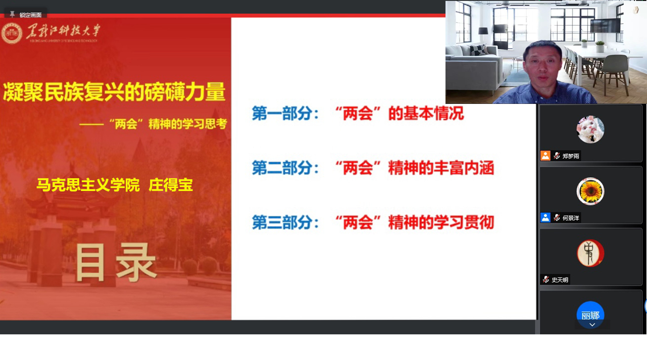 二是邀请思政课教师做“两会”精神主题宣讲。4月12日,管理学院线上召开了全国两会精神宣讲报告会暨全院教职工政治理论学习会议。邀请乐鱼网站_乐鱼(中国)马克思主义学院副教授庄得宝对2023年全国两会精神作专题宣讲,会议由学院党委书记何景洋主持。