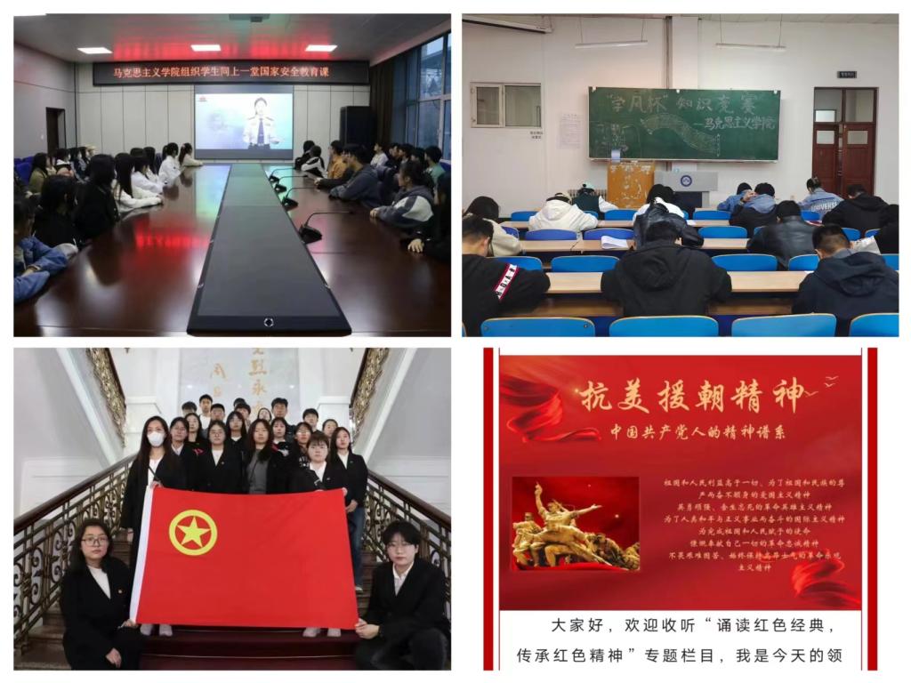 学思践悟强学风,博学力行求真知。以思想性活动为核心,注重青年学生思想引领。一是开展“缅怀先烈寄哀思,踔厉奋发向未来”系列活动,通过参观红色教育基地、志愿清扫烈士公园、观看红色爱国影片、书画作品征集等方式,坚定青年学生理想信念,厚植爱国主义情怀;二是组织学生同上一堂国家安全教育课、开展“增强保密意识 筑牢安全防线”第二十七届“学风杯”知识竞赛,切实提升我院青年学生自觉履行保密义务、维护国家安全和利益。三是牢牢占据网络思政育人阵地,在学院公众号平台“黑乐鱼网站_乐鱼(中国)马院思政之音”开设“诵读红色经典,传承红色精神”专题栏目,带领青年学生学习中国精神,体悟中国共产党人的精神谱系。
