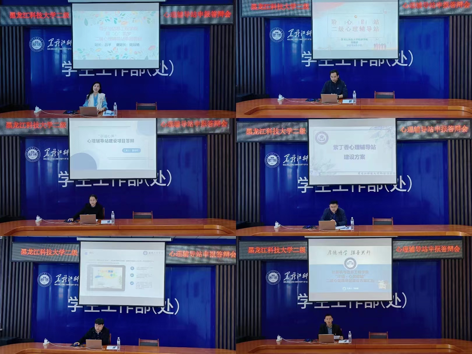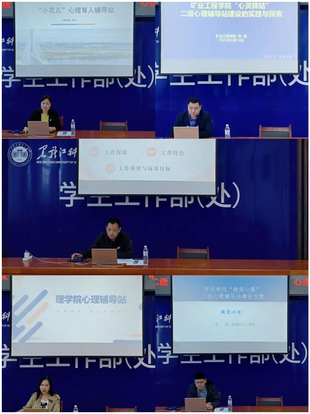答辩环节中,各申报学院的心理辅导站站长围绕心理辅导站创建思路、队伍建设、工作保障、工作特色、工作成效与远景目标等方面进行了陈述和答辩。经过前期实地考察、现场答辩、专家评审、学工部综合评议,环化学院、电信学院、管理学院、经济学院、计算机学院、外国语学院等6个学院达到预期建设目标,确立为二级心理辅导站授牌单位,矿业学院、研究生学院、建工学院、理学院、人文学院等5个学院基本达到预期建设目标,确立为二级心理辅导站建设单位。