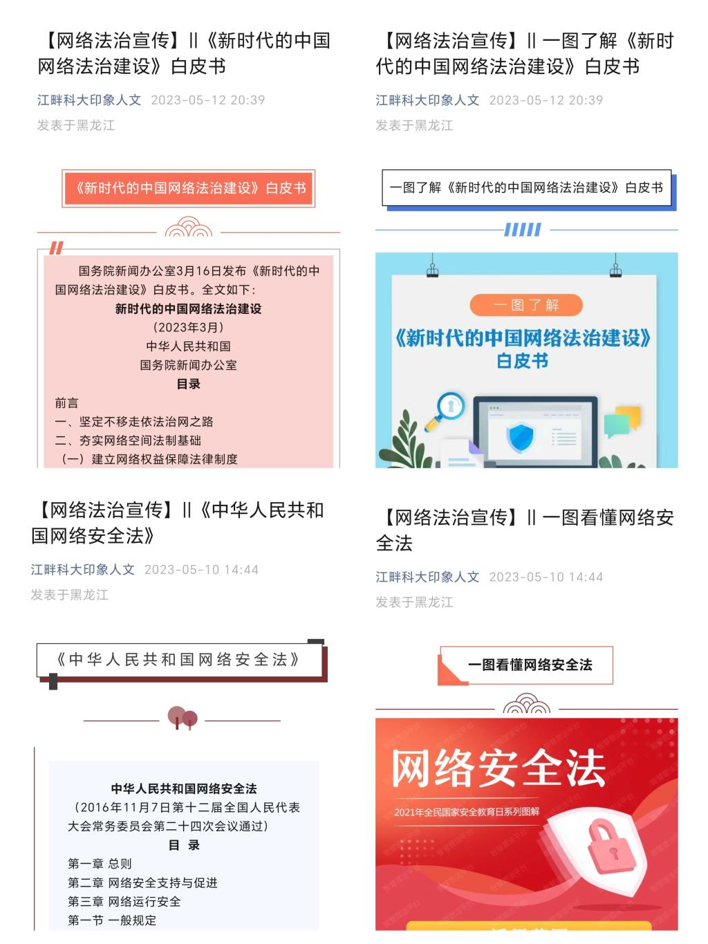 为落实学生工作部下发的《关于在全校学生中开展“提升网络法治意识和素养”专题思想教育活动的实施方案》,加强网络法治宣传教育,增强学生的网络法治意识,引导大学生养成良好的网络行为习惯,进一步弘扬时代新风、共建网络文明,人文学院开展“提升网络法治意识,增强网络法治素养”系列活动。