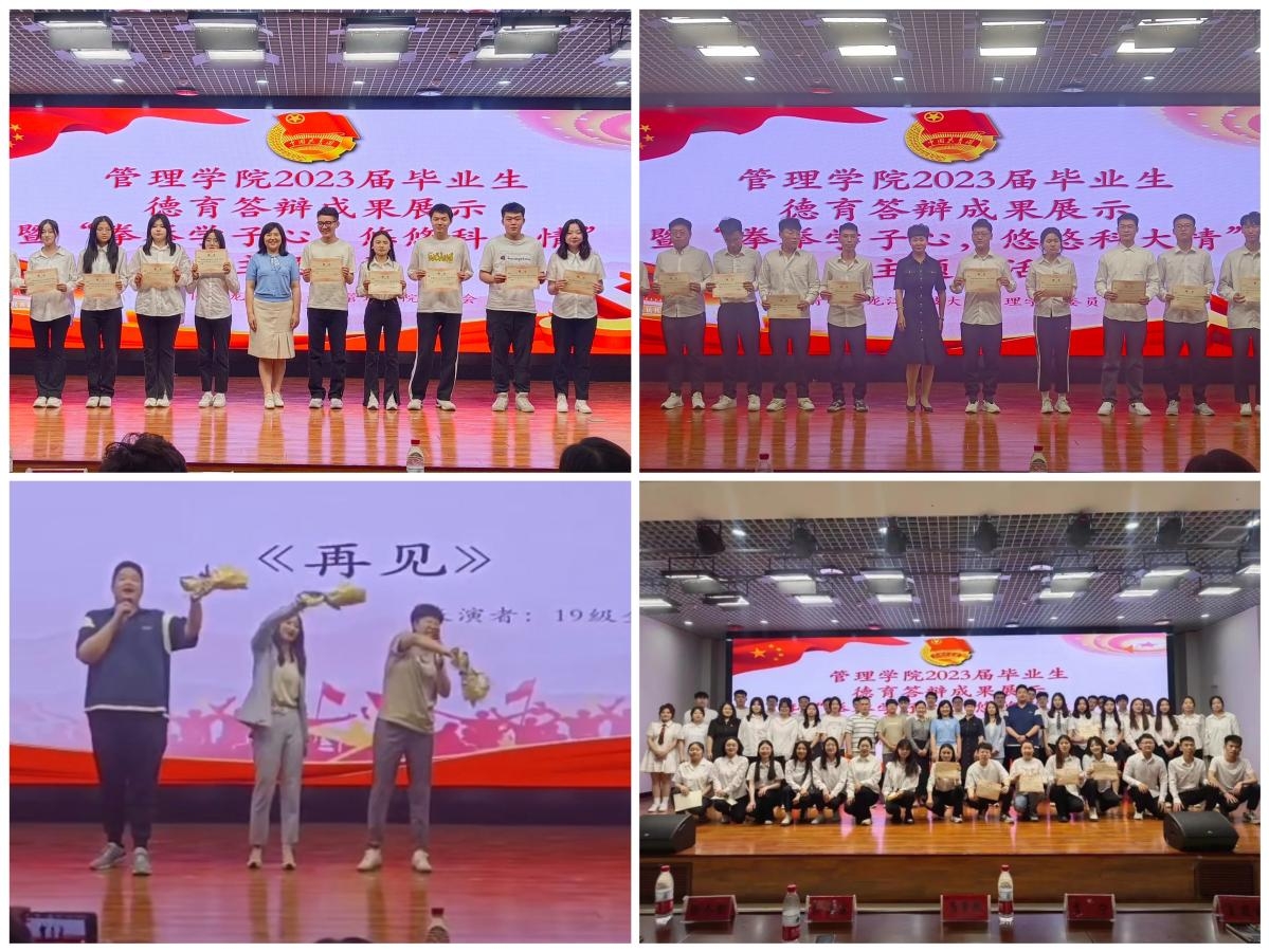 为努力营造“和谐、温暖、庄重、安全、难忘”的毕业生文明离校氛围,切实增强毕业生的归属感和获得感,管理学院于6月14日在朝阳楼0131举办2023届毕业生德育答辩成果展示暨“拳拳学子心,悠悠乐鱼网站_乐鱼(中国)情”主题公开团活。校团委副书记马紫微、管理学院党委副书记徐海英、管理学院全体辅导员及毕业生、在校生团学骨干代表共计230余人参加了本次活动。