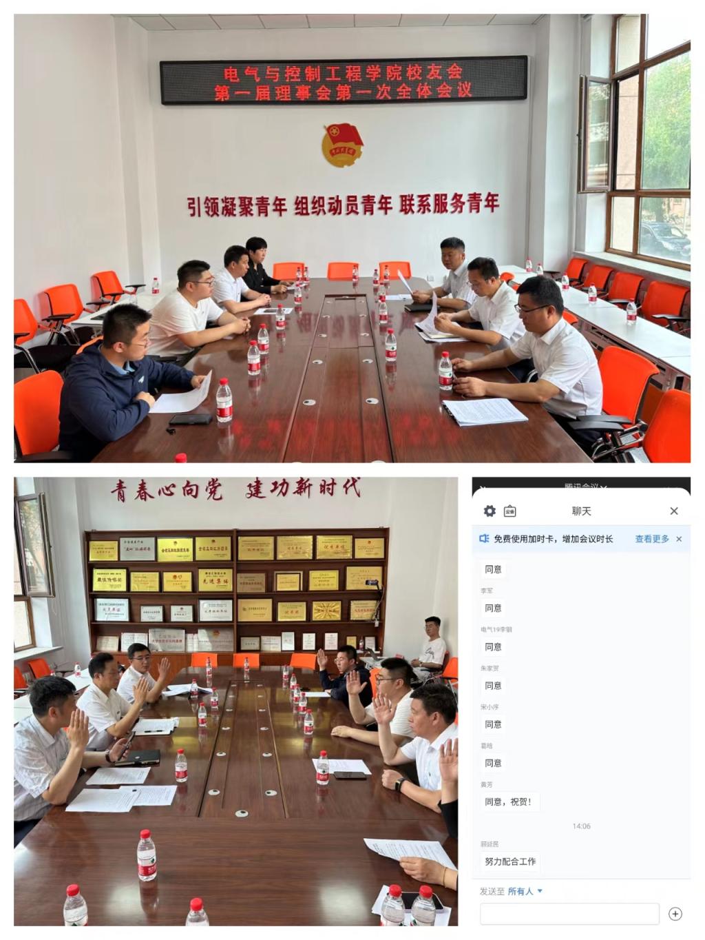 校友会成立大会后,学院校友会召开了第一届理事会第一次会议,新当选理事、学院党委副书记侯树成主持会议,会议审议通过了第一届理事会会长、副会长、秘书长、副秘书长候选人建议名单、《电气与控制工程学院校友会第一届理事会会长、副会长、秘书长、副秘书长选举办法(草案)》;选举电气学院党委书记李鹏银当选第一届理事会会长,斑马公司北方区销售总监顾延民、电气学院副院长李忠勤、海德威公司北区经理李春鹏当选副会长,电气学院党委副书记侯树成当选秘书长,电气学院学工办主任韩大伟当选副秘书长。