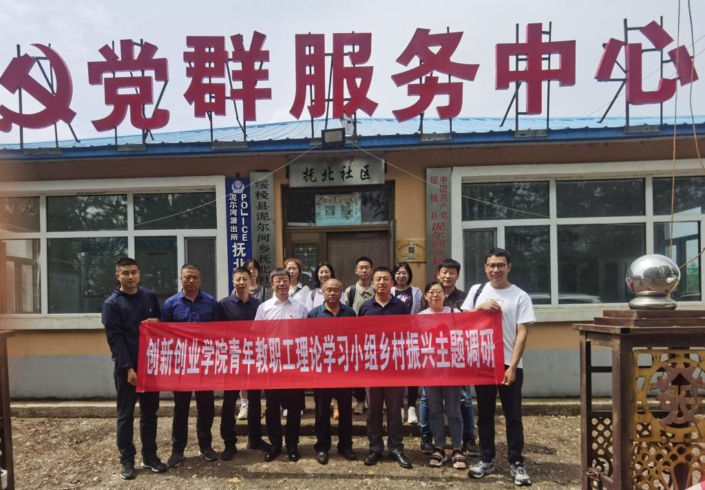 6月21日,创新创业学院青年教职工理论学习小组(党员突击队)由副院长杨兆楠带队,一行9人赴绥化市绥棱县泥尔河乡抚北村开展了“加强政治理论学习、推动创新创业教育、提升服务育人能力,促进乡村可持续发展”的主题教育社会实践调研活动。