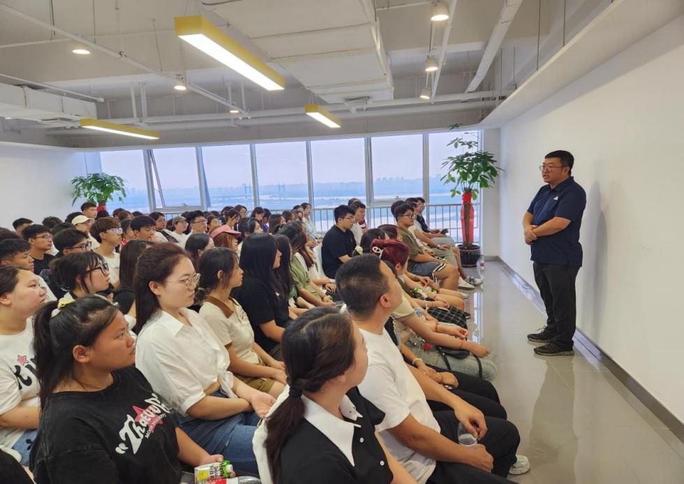 8月21日下午,管理学院院长洪亮、市场营销系主任田雪莲和骨干教师宋小燕、王春梅、马雪松及市场营销系2022级学生来到松北区新光光电产业园,与黑龙江省龙王食品有限公司,中科院中科盈海科技公司、哈尔滨市农产品行业协会等负责人进行访企拓岗考察交流。