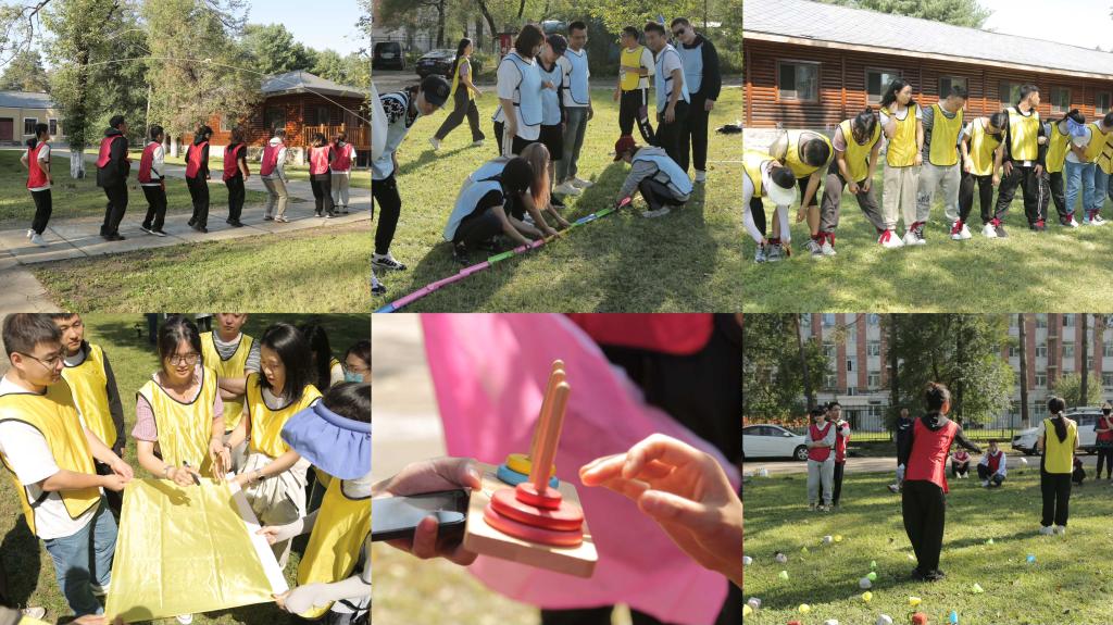 在“汉诺塔、抢滩登陆、击鼓颠球、跳长绳、二人三足”等丰富的竞技项目中,同学们制定“作战计划”,集思广益,分工协作,相互信任,相互包容,树立了集体意识,提升了团队凝聚力与向心力,在实践和创新中不断完善自我。